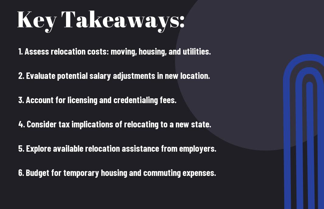 Some expenses you’ll face when relocating as a doctor include travel, housing, and family support. You’ll need to plan for these costs to ensure a smooth transition. Your financial situation will be impacted, so it’s necessary to consider all expenses.